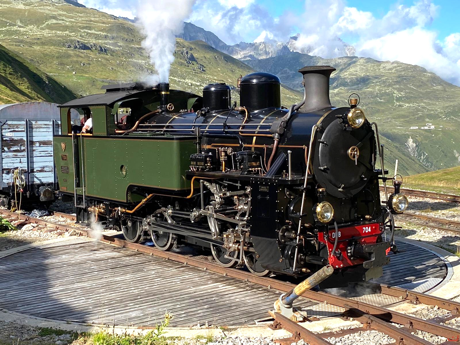23.8.2020 Grosses Dampfbahnfest bei der DFB. HG 4/4 704 auf der Drehscheibe Furkastrasse. Foto: Klaus Himmelreich