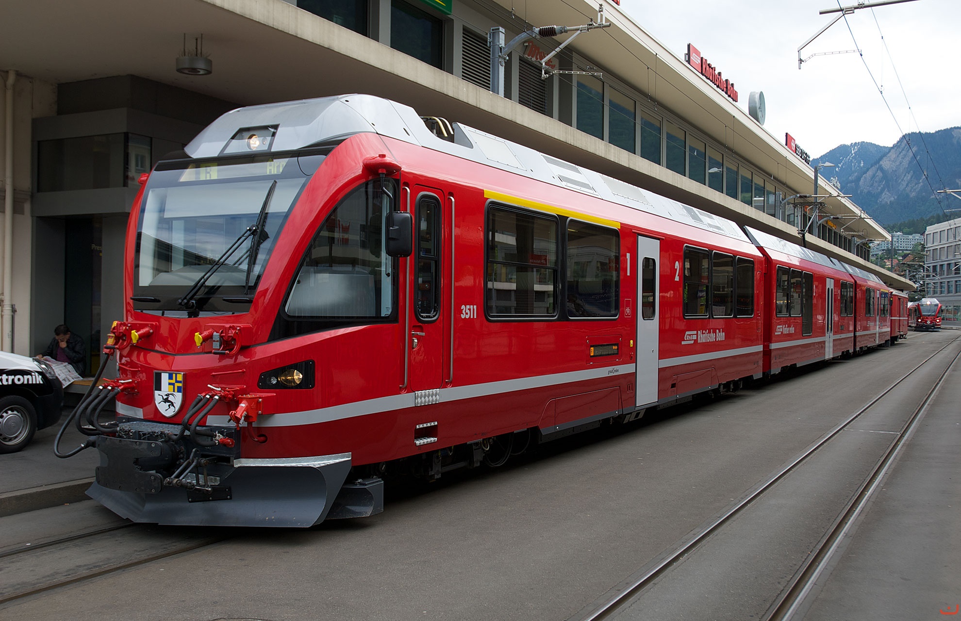 Regionalzug Chur-Arosa mit ABe 8/12 in Chur Bahnhofplatz.