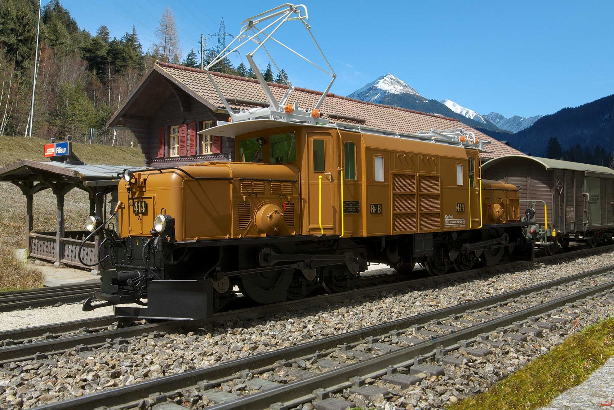 Mit einem Viehzug zurück aus den Bergen, RhB Ge 6/6 I 414.