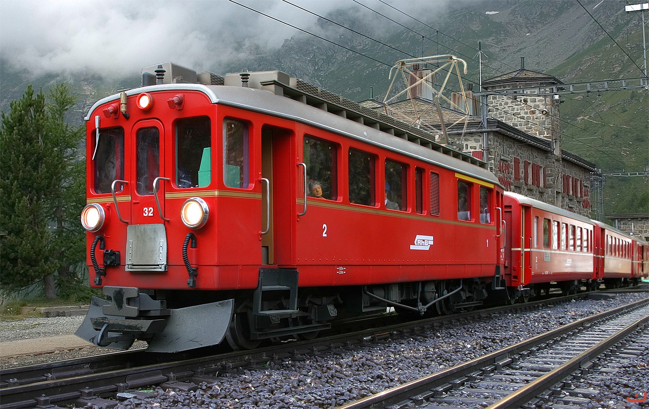 ABe 4/4 32 mit Regionalzug St. Moritz - Tirano in Alp Grüm.