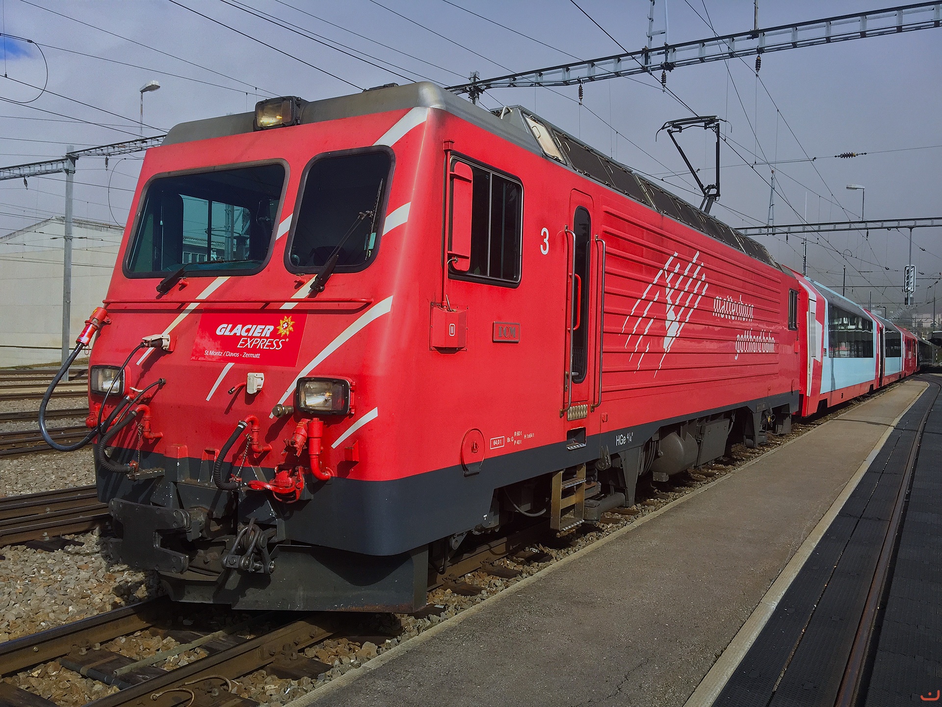 MGB HGe 4/4 ll 3 Dom (ex BVZ) mit Glacierexpress 903 in Andermatt am 10.10.2015.