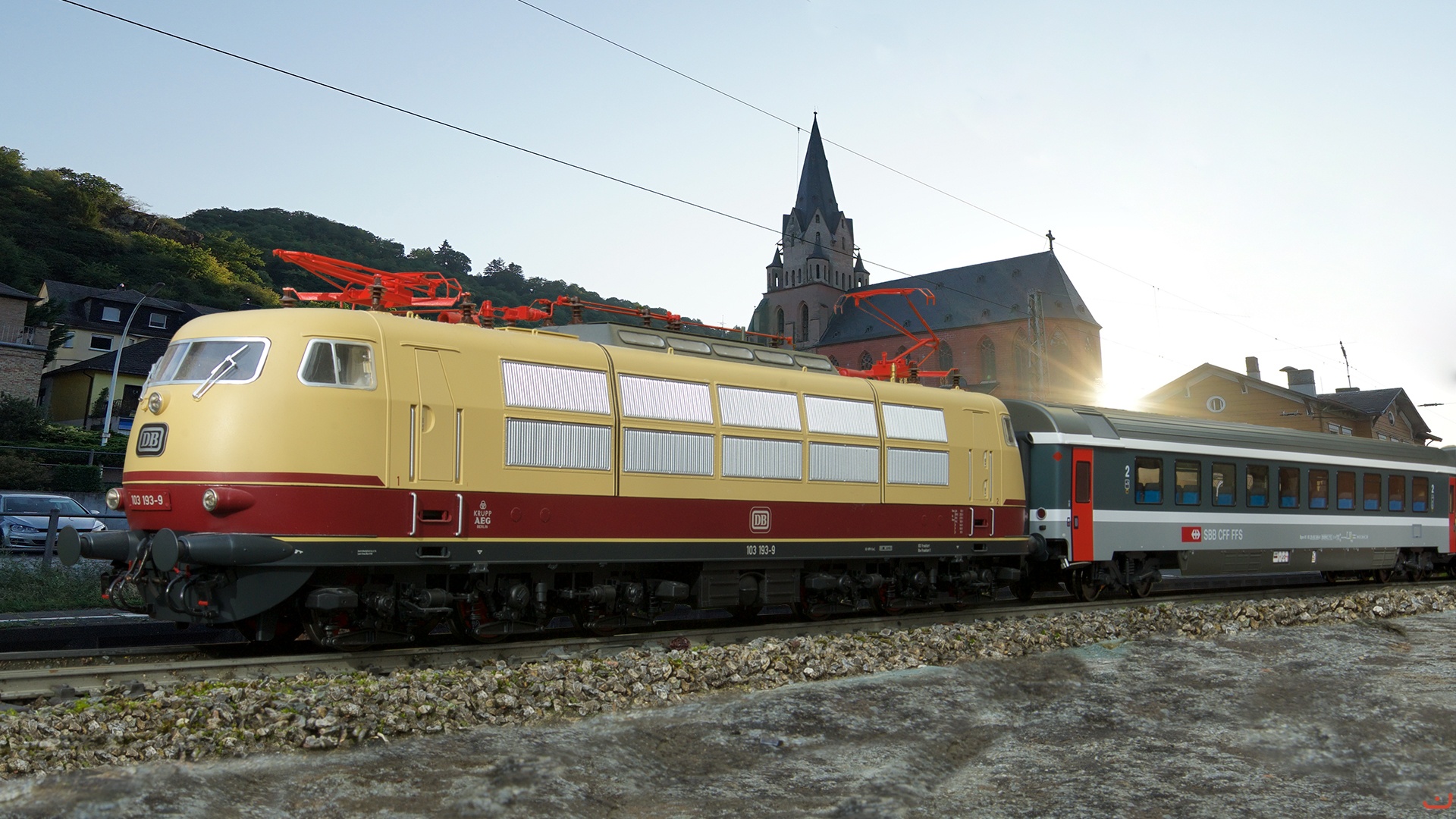 Startseite Startseite » Spur 1 Modelle » DB BR 103 » DB BR 103 mit EC 101 in Oberwesel