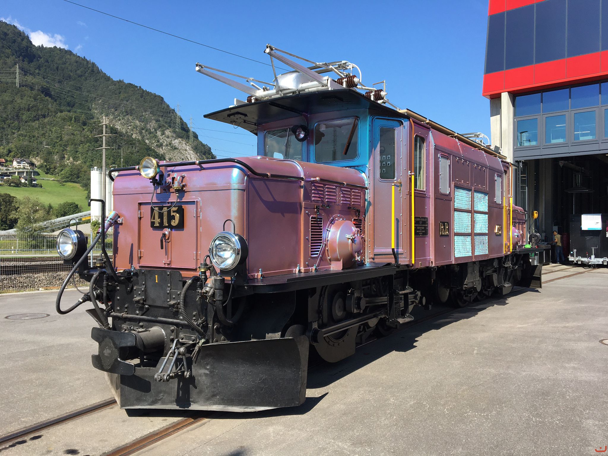 Werbung und Marketing machen bekanntlich vor nichts Halt – auch nicht vor einer Loklegende. So erhielt die Ge 6/6 I 415 im Rahmen einer Marketingaktion eine auffällige Chamäleon-Lackierung, die je nach Lichteinfall in verschiedenen Farbtönen schimmerte. Sie diente als Blickfang zur Neulancierung eines Top-Modells in Spur G aus dem Hause Märklin / LGB. Ob man das nun als gelungene Idee oder als Stilbruch empfindet, bleibt Geschmackssache – Wehms gefällt. Offenbar ein must-have für einige wenige, die sich vom Glanz vergangener Tage in moderner Farbgebung ansprechen lassen.