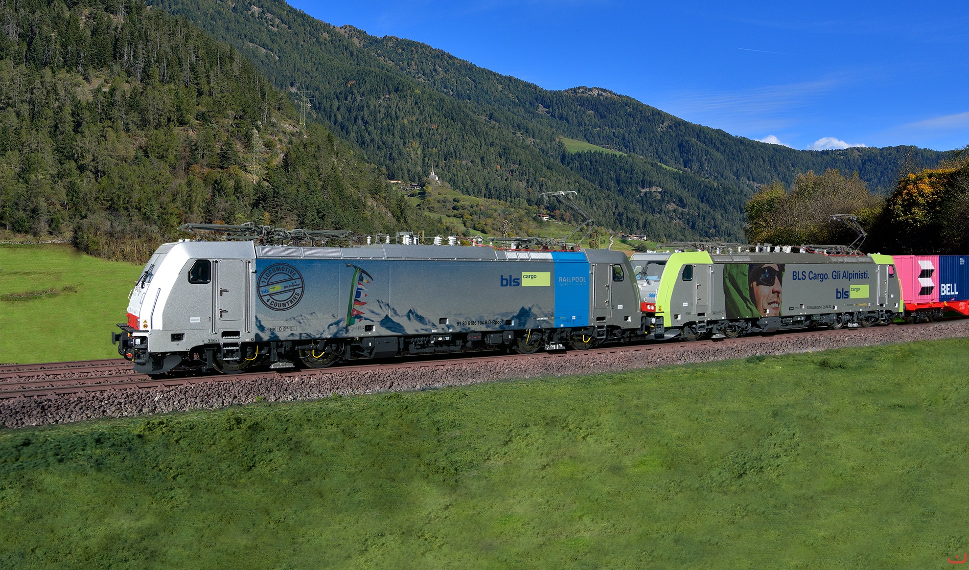 Railpool BR 186 104 und BLS Re 486 505 ziehen einen Ukv durch die Alpen